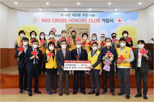 대한적십자사 제주도지사(회장 오홍식)는 고상후 제주막걸리 회장이 1억원 이상을 기부하는 약정을 체결해 '레드크로스아너스클럽(RCHC)'에 가입했다고 10일 밝혔다.
