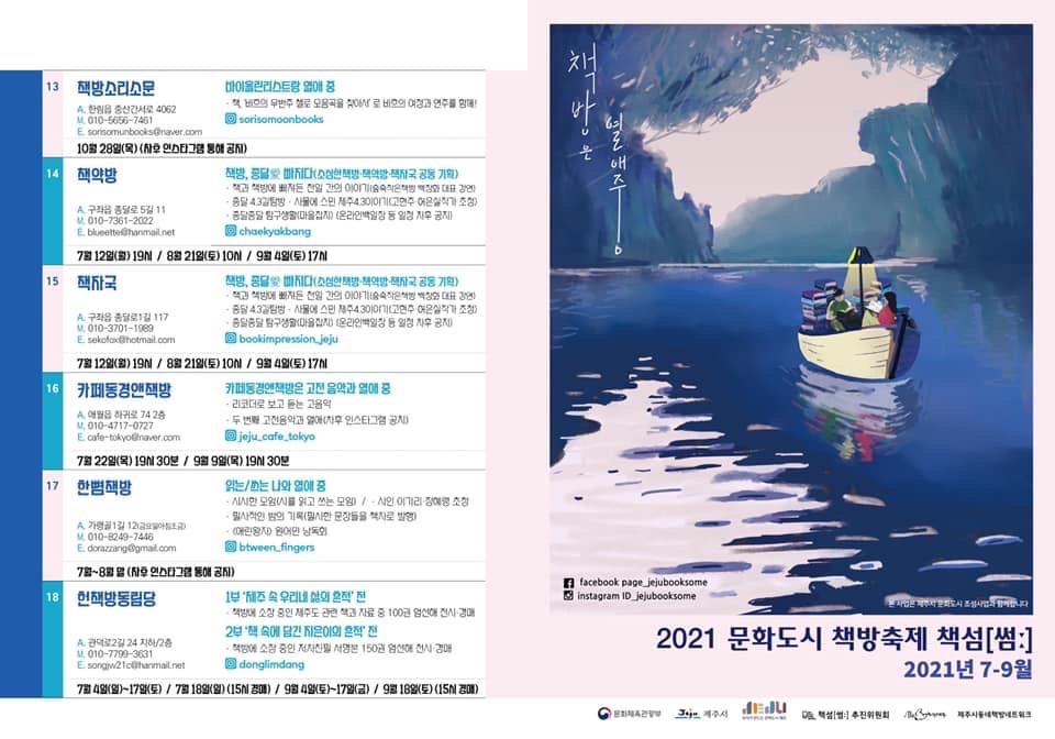 제주시는 문화도시 조성사업의 일환으로 오는 10월 28일까지 제주시내 동네책방에서 '2021 제2회 문화도시 책방축제 책섬[썸ː ]'을 개최한다.