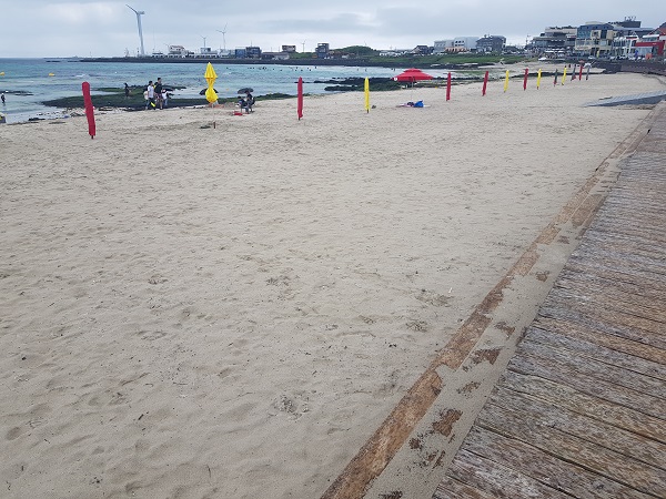 이날 제주도에 따르면 도내 해수욕장 이용객은 개장 첫날인 지난 1일 1만1027명, 2일 1만70명에서 장마가 시작한 3일 7838명, 4일 8100명 등으로 나흘 만에 20% 줄었다.