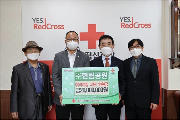 ㈜한림공원(대표이사 송상섭)은 최근 대한적십자사제주특별자치도지사(회장 오홍식)를 방문해 취약계층 지원을 위한 후원금 2000만원을 기탁했다.