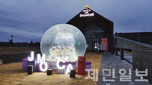 올해 연말 저지문화예술인마을을 찾는 사람들을 위한 작은 선물이 마련됐다. 제주현대미술관(관장 변종필)이 미술관 공공수장고 앞 야외공간에 설치한 대형 스노우볼 '희망의 구슬'이다.