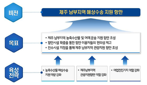 육성전략으로 △농수축산물해상수송 지원 강화 △제주남부지역 관광지원항만 역할 강화 △어업전진기지 역할 강화 등으로 압축됐다.