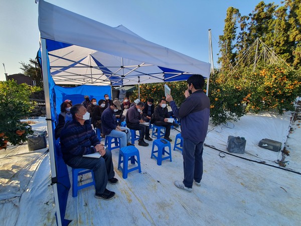 지난해는 저장해서 출하했다가 손해를 많이 보기도 했다. 지난해산 감귤의 경우 제주도에 동해피해가 발생한 이후 전체 감귤 가격이 하락했고, 출하 마무리 시점까지 가격이 회복되지 않았다. 지난해의 경험으로 분산 출하가 중요하다는 느꼈다. 올해는 서귀포시가 운영하는 농수산물 인터넷 쇼핑몰 '서귀포in정'을 통해서도 출하할 예정이다. 서귀포인정은 일정 당도 이상의 고품질을 생산하면 가격을 보장해 주는 감귤가격보장제를 시행하고 있다. 본인이 생산한 감귤에 대해서는 자신이 가장 잘 안다. 감귤의 품질 상태나 처리 능력 등을 고려해서 직거래, 계통출하 등 그리고 시기별로 분산 출하해야 가격하락에 대한 리스크를 줄일 수 있다. 강의=김진성 농가. 정리=윤주형 기자.