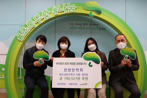 기탁된 장학금은 여행과치유가 아동복지시설 및 야간학교 후원을 위해 운영하는 '천원장학금'을 통해 마련, 청소년혼디 학생 2명에게 전달될 예정이다.