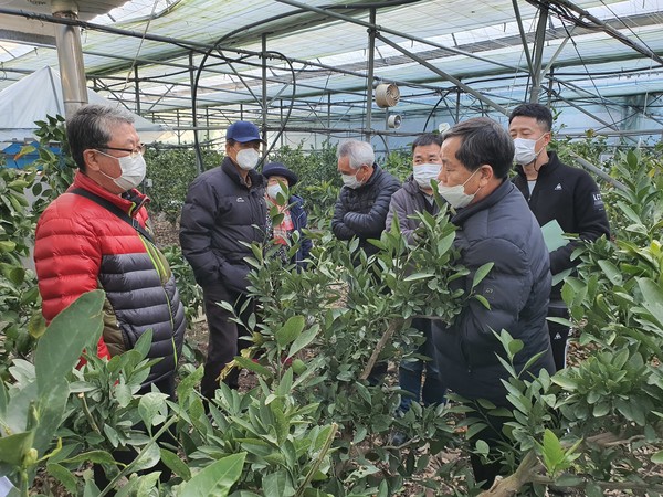 비가림 감귤은 3월이면 꽃봉오리가 보인다. 꽃봉오리가 보일 때 전정을 해야 한다. 특히 꽃이 좁쌀 방울만 할 때 가지를 훑어주는 작업을 해야 한다. 그래야 새순이 돋아나고, 열매가 좋아진다. 전정할 때는 자신이 생각하는 것보다 약하게 해야 한다.