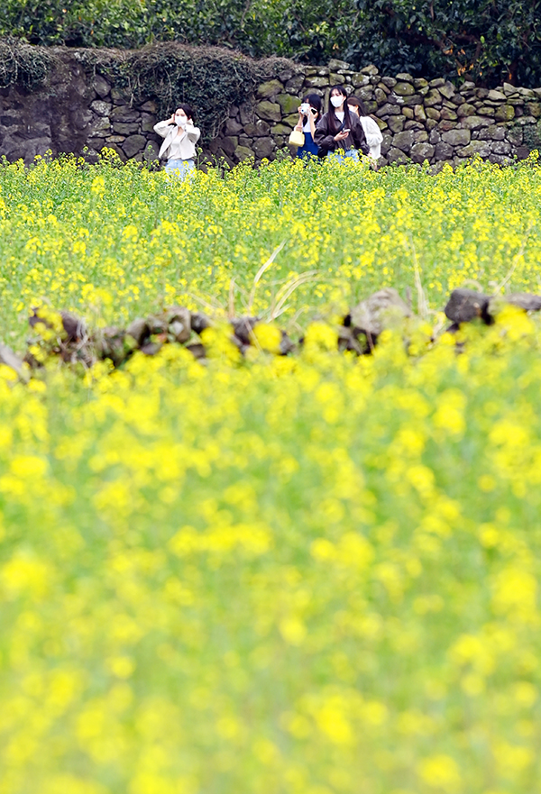 연이틀 비가 내리다 그친 23일 오후 제주시 애월읍 항파두리 인근 유채꽃 밭에서 관광객들이 사진을 찍으며 즐거운 시간을 보내고 있다. 김용현 기자 김용현 기자 noltang@jemin.com 다른기사 보기 저작권자 © 제민일보 무단전재 및 재배포 금지 댓글삭제 삭제한 댓글은 다시 복구할 수 없습니다. 그래도 삭제하시겠습니까? 비밀번호 닫기 기사 댓글 0 댓글 접기 댓글입력 권한이 없습니다. 댓글 내용입력 비회원 로그인 이름 비밀번호 댓글 내용입력 댓글쓰기 계정을 선택하시면 로그인·계정인증을 통해 댓글을 남기실 수 있습니다. 회원 로그인 이름 비밀번호 자동등록방지 로그인 옵션 창닫기