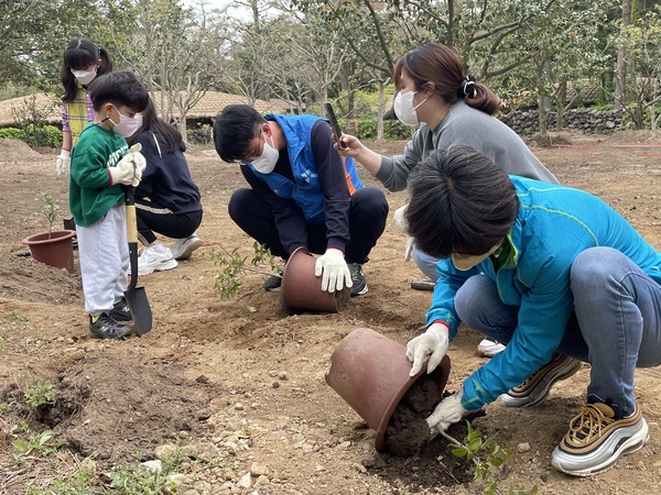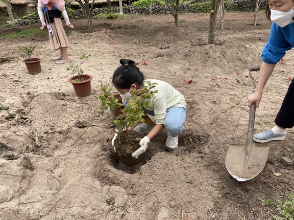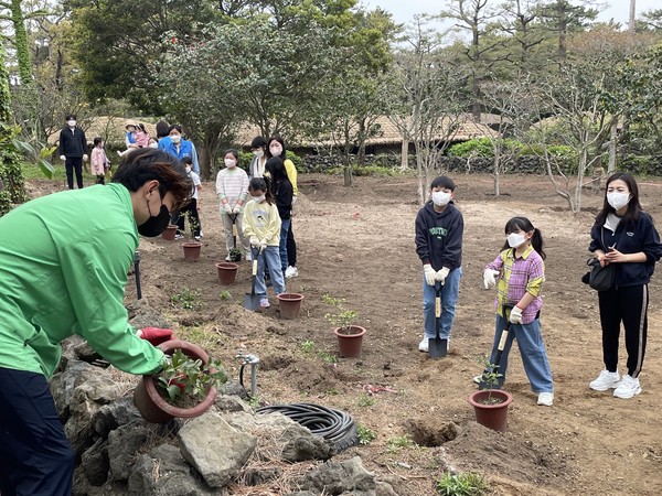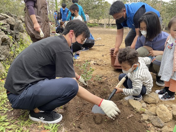 23일 한림공원 내 동백원에서 진행된 청청 반려나무 심기 행사 참가자들의 표정을 시종 밝았다. 코로나19 사회적 거리두기로 가족끼리 뭔가 하는 것도 눈치가 보였었지만 마침 해제가 된데다 의미있는 일을 같이 할 수 있다는 점에서 만족감을 표시했다.