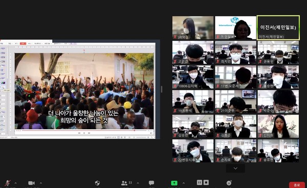 제민일보사(대표이사 사장 양치석)와 제주도교육청이 공동으로 진행하는 '2022 찾아가는 인성아카데미'가 지난달 26일 제주동중학교 1학년 학생들을 대상으로 진행됐다. 이날 강사로 나선 신지원 사이버외교사절단 반크 연구원은 '사이버 외교의 국제사회 영향력-역사를 바꾸는 사람들'을 주제로 전 세계에 알려진 우리나라의 유구한 역사, 아름다운 영토 등 올바르게 알리기 위해 잘못된 정보에 대한 시정활동 동참을 강조했다. 강의는 실시간 화상회의(ZOOM)를 활용한 비대면 방식으로 진행됐다.