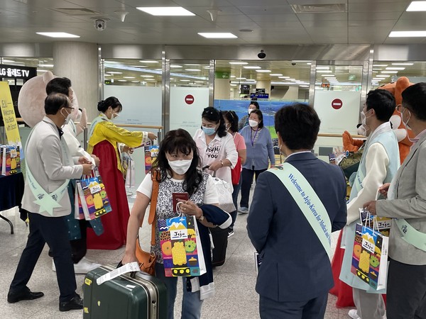 제주도가 처음 띄운 의료웰니스 전세기를 타고 몽골인 150명이 제주에 입도했다.