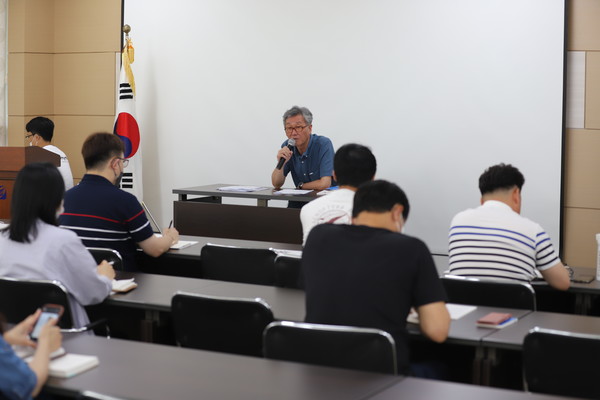 제민일보(대표이사 사장 양치석)와 지역신문발전위원회는 10일 오전 제민일보 1층 회의실에서 임·직원을 대상으로 '2022 찾아가는 언론사 사별연수'를 개최했다.