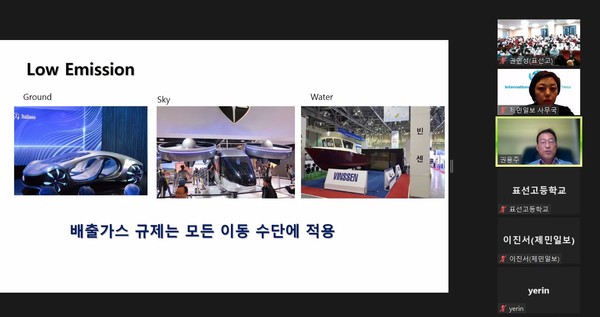 제민일보사(대표이사 사장 양치석)와 제주도교육청이 공동으로 주최하는 '2022 찾아가는 인성아카데미'가 지난달 18일 표선고등학교 1학년 학생들을 대상으로 진행됐다. 모빌리티산업 전문가로 알려져 있는 권용주 국민대학교 자동차운송디자인과 겸임교수는 이날 강의에서 인간의 이동수단 변화 등을 소개했다. 강의는 실시간 화상회의(ZOOM)를 활용한 비대면 방식으로 진행됐다.
