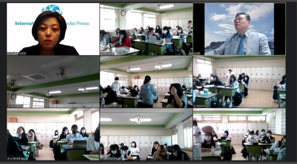 제민일보(대표이사 사장 양치석)와 제주도교육청이 공동주최하는 '2022 찾아가는 청소년 인성아카데미'가 지난달 18일 제주삼성여자고등학교 2학년 학생들을 대상으로 진행됐다. 이날 강사로 나선 김성중 극지연구소 대기연구본부장은 '자연변동에 의한 북극 해빙 감소, 남극 해빙 증가 및 수온 감소'를 주제로 학생들에게 기후변화에 따른 미래 생태계 교란 심각성을 설명했다. 특히 강의는 실시간 화상회의(ZOOM)를 활용한 비대면 방식으로 진행됐다.