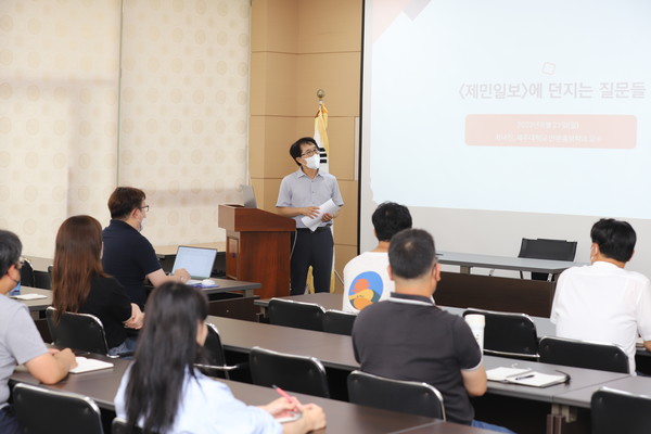 이날 연수의 강사로 나선 최낙진 제주대학교 언론홍보학과 교수는 '지역 언론의 미래 방향'을 주제로 강의를 진행했다.