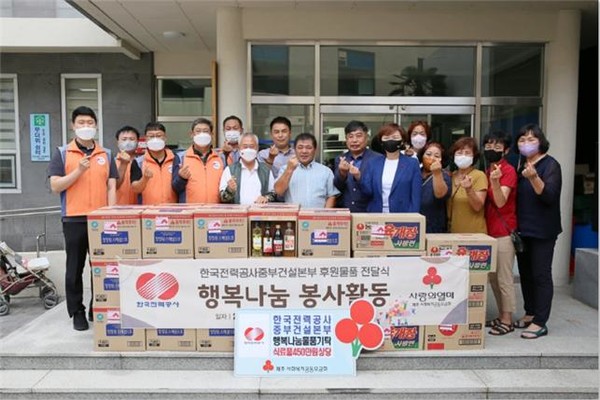 한국전력공사 중부건설본부(본부장 김경수)는 지난 24일 삼양1동마을회관에서 제주사회복지공동모금회(회장 강지언)에 추석맞이 취약계층 지원을 위한 식료품(450만원 상당)을 기탁했다.