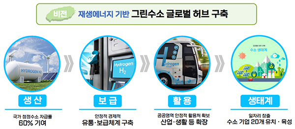 제주특별자치도는 그린수소 글로벌 허브 구축을 기반으로 수소경제로의 전환을 선도하는 동시에 '그린수소 도시'로 도약한다는 프로젝트를 세우고 있다. 정부 또한 제주에 대규모 그린수소 실증사업을 추진하는 등 도와 정부간 '수소경제 성장을 위한 협력과 지원을 더더욱 강화해야 한다.