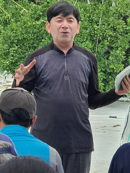 김진성 명인은 노지에 성목이식을 한 나무에서 매년 해거리 현상 없이 고품질 감귤을 생산해서 높은 소득을 올리고 있다. 타이백 설치를 통한 철저한 물관리로 나무에 수분 스트레스를 주는 방법으로 고당도 감귤을 생산하고 있다. 김진성 명인은 과수원 형태와 상태, 나무 생육 상황 등을 종합적으로 고려해 물 공급 시기와 공급량을 결정해야 한다고 강조한다. 태풍으로 타이벡이 훼손돼 일시에 많은 양의 물이 공급되는 상황을 차단하기 위해 태풍 대비도 철저히 해야 한다고 조언한다. 김진성 성목이식-조생 명인이 지난 8월 18일 교육한 고품질 감귤 생산을 위한 재배법을 들어본다.