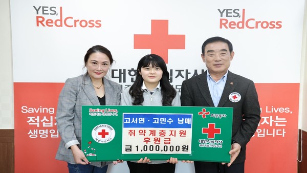 남매인 제주중앙고등학교 고서연, 제주중학교 고민수 학생은 최근 대한적십자사제주특별자치도지사(회장 오홍식)를 방문해 취약계층 지원을 위한 성금 100만원을 기탁했다.