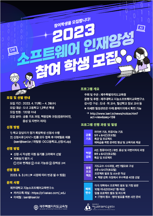 제주도교육청은 디지털·인공지능 역량을 갖춘 핵심 인재 양성을 위한 소프트웨어 인재 양성 프로그램을 운영한다.