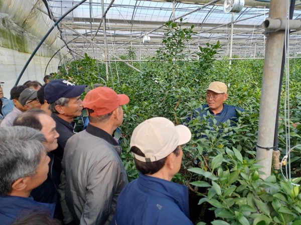 강성훈 명인(한라봉)은 매해 최적의 재배법을 찾기 위해 연구하고 있다. 새로운 시험을 통해 얻어낸 재배 결과를 적용하면서 매년 해거리 현상 없이 일반 농가보다 많은 양을 생산하고 있다. 강성훈 한라봉 명인이 지난 5월 9일 표선면 가시리 자신의 한라봉 농장에서 고품질 한라봉 재배법 등을 서귀포시 지역 감귤농가를 대상으로 교육했다.