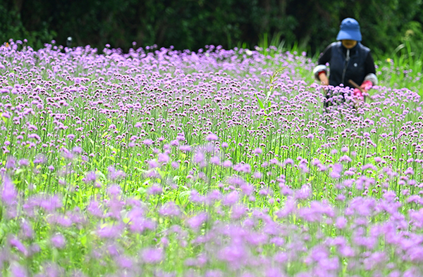 장마가 소강상태를 보이며 연일 후덥지근한 날씨를 보이는 가운데 4일 제주시 애월읍 항파두리 인근에 버베나꽃이 활짝 피어 핑크색 향연을 펼치고 있다. 김용현 기자