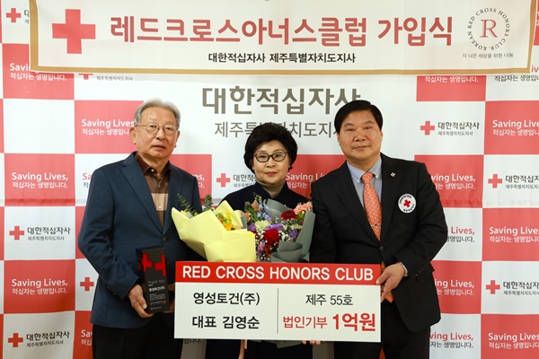 특히 2019년에는 제주적십자 1억원 이상 고액 기부자 모임인 '레드크로스아너스클럽(RCHC)'에 개인 5호와 법인 6호 동시에 이름을 올렸다. RCHC 회원으로 개인과 법인 모두 가입한 사례는 전국 최초다.