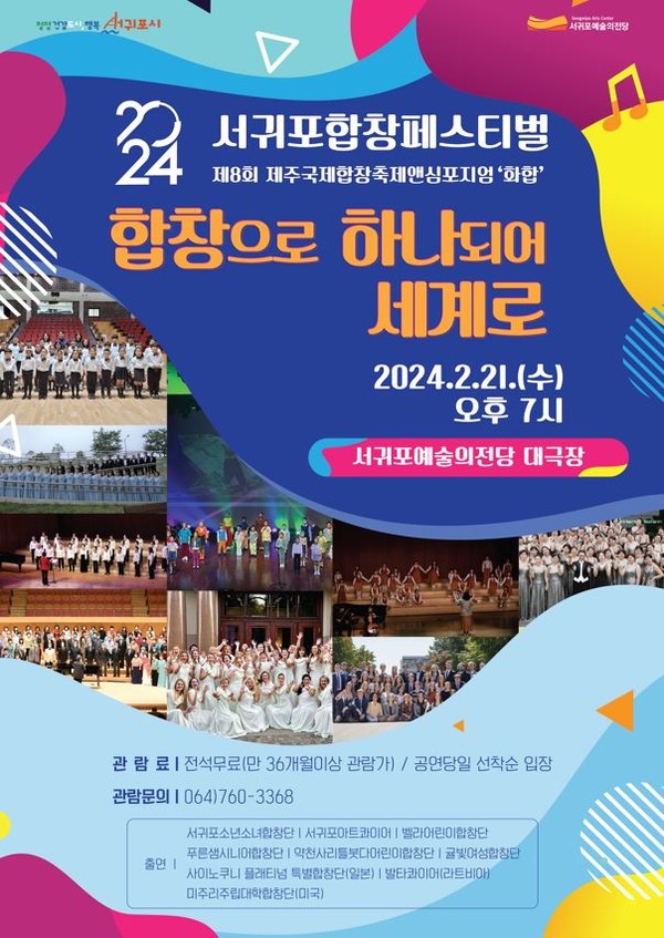 서귀포시는 오는 21일 오후7시 서귀포예술의전당 대극장에서 '2024 서귀포합창페스티벌'을 개최한다.