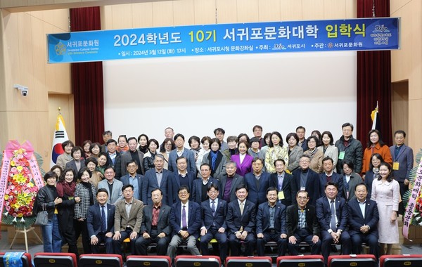 서귀포문화원(원장 양병식)은 지난 12일 서귀포시청 문화강좌실에서 문화대학 10기 입학식을 진행했다. 서귀포문화원은 지역주민들에게 인문학 및 제주역사문화 교육을 통해 자아성장과 지역사회 평생교육 발전과 문화도시 시민으로서의 시민의식 고취에 기여하고자 서귀포문화대학을 운영하고 있다.