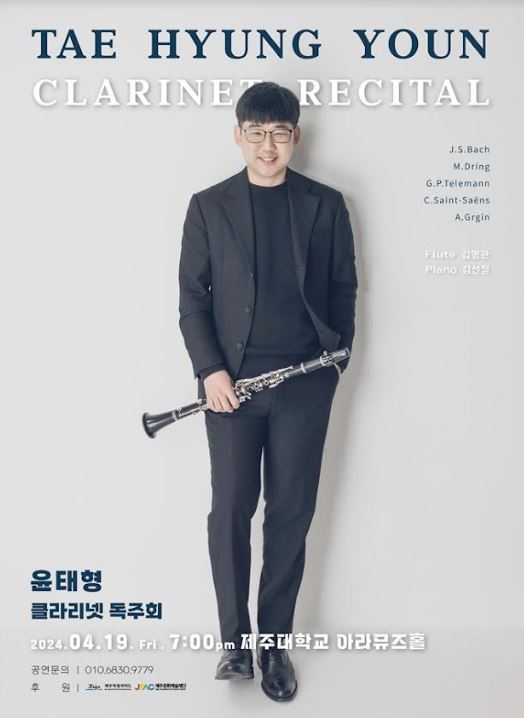 제주 출신 클라리넷 연주자 윤태형의 독주회가 오는 19일 오후 7시 제주대학교 아라뮤즈홀에서 열린다. 2018년 이후 일곱 번째로 선보이는 개인 연주회다.