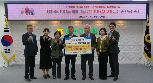 제주시농협(조합장 고봉주)은 20일 '장애인의 날'을 맞아 도내 장애인의 복지증진을 위해 농촌사랑기금 300만원을 제주특별자치도자원봉사협의회에 기탁했다.