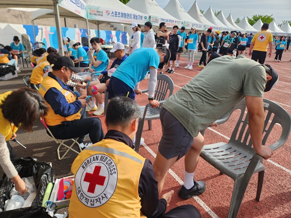 이날 노고로기적십자봉사회는 제주대학교 대운동장 내 부스에서 스포츠마사지 재능 기부를 마련했다.