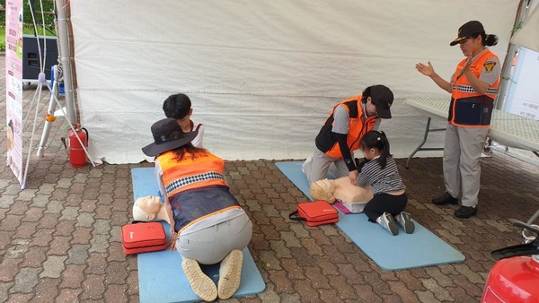 체험 프로그램은 △소화기 사용법 및 심폐소생술 응급처치법 △꼬마소방관 방화복 착용 및 가족 포토존 운영 △소방청 메타버스 119안전교육 프로그램 안내 등으로 이뤄졌다.