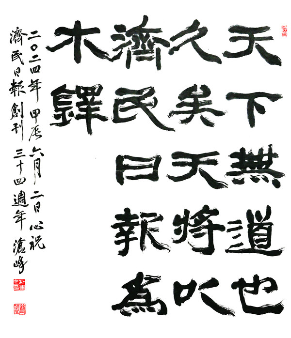 논어 81절을 인용한 내용입니다. 힘들고 정의가 사라지는 세상에서 제민일보가 도민의 염원을 받들어 정론을 펼치며, 정의를 바로 세우라는 뜻이 담긴 휘호입니다.