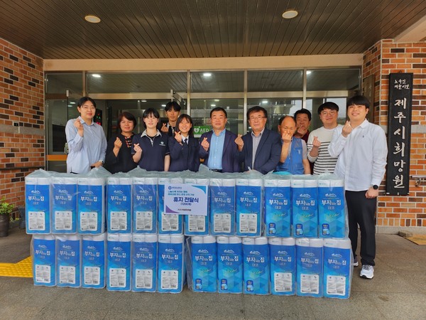 제주중앙고등학교(교장 안경호)는 최근 지역내 사회복지시설인 제주시립희망원을 방문해 휴지 1200개를 전달했다.