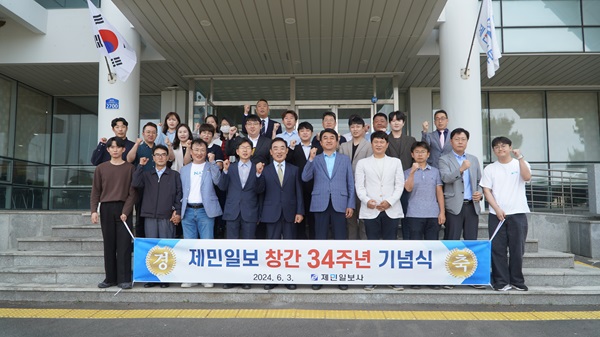 제민일보(대표이사 사장 오홍식)는 3일 본사 1층 대회의실에서 전 직원이 참석한 가운데 창간(6월 2일) 34주년 기념식을 개최했다.