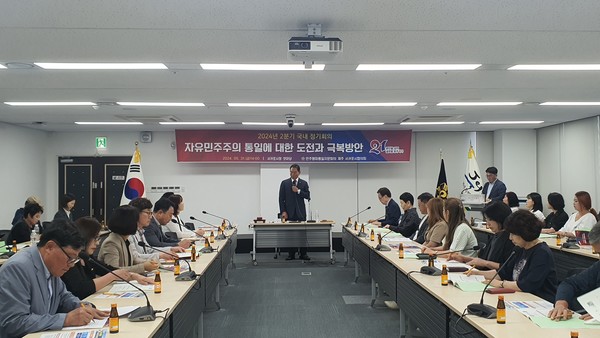 이날 정기회의는 임원 및 회원 등 50여 명이 참석한 가운데 ‘자유민주주의 통일에 대한 도전과 극복방안’ 주제에 대해 토론하고, 민주평통 자문위원들과 탈북민간의 멘토·멘티 서약과 2분기 주요 사업계획에 논의했다.