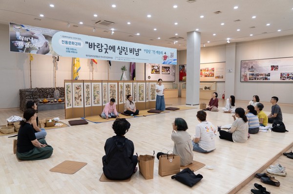 제주칠머리당영등굿전수관에서 진행되는 이번 강좌는 국가유산청과 제주특도가 주최하는 국가유산 사업으로, 보존회가 3년간 주관해 오고 있다.