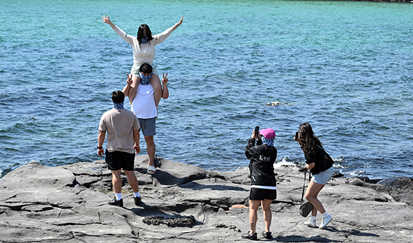 10일 제주시 낮최고기온이 29.2도를 기록하는 등 초여름 무더위가 시작된 가운데 애월해안도로에서는 관광객들이 시원한 바닷바람을 맞으며 피서를 즐기고 있다. 김용현 기자