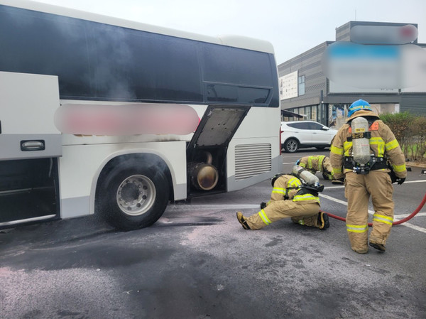 11일 제주도소방안전본부에 따르면 이날 오후 5시7분께 제주시 오라2동 한 식당 주차장에서 버스에 불이 났다는 신고가 접수됐다.