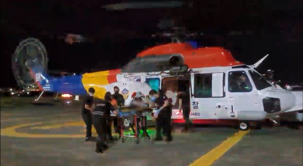 신고를 접수한 해경은 완도해경서 300t급 경비함을 현장으로 출동시켜 B씨를 추자도로 이송했다. 이후 오전 3시37분께 추자도에 대기 중인 헬기에 B씨를 태워 약 16분만에 제주국제공항에 있던 119구급대에 인계했다.