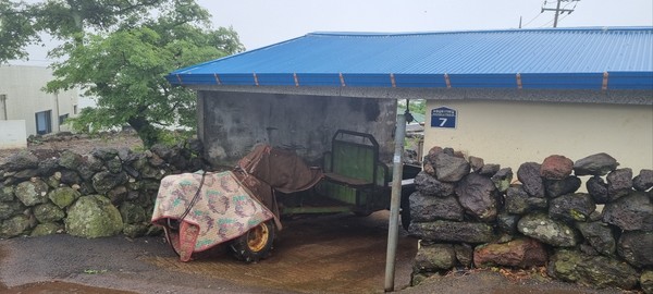 낮은 파란 지붕이 너무 예뻐 마당을 기웃거리는데 담요를 뒤집어 쓴 경운기 한 대가 딱 버티고 있다. 마당 안에는 참깨, 고추, 콩이 자라고 있다. 담벼락에 기대어 자라는 고추는 대나무 가지가 받쳐주고 있다. 유독 고춧잎이 푸르고, 고추가 실하다. 집 주인의 부지런하고 알뜰한 성정이 느껴지는 마당이다. 누구네집 마당을 들어설 때 마다 느끼는 이 작은 떨림은 무엇일까? 집 없이 떠돌던 어린 시절, 내 말을 잘 들어주던 친구의 집 마당을 들어설 때도 이랬다. 고양이 걸음처럼 두려움을 가득 실은 발걸음을 조심스레 내딛으며 동정을 살핀다. "삼춘 무시거 햄수과?". 개