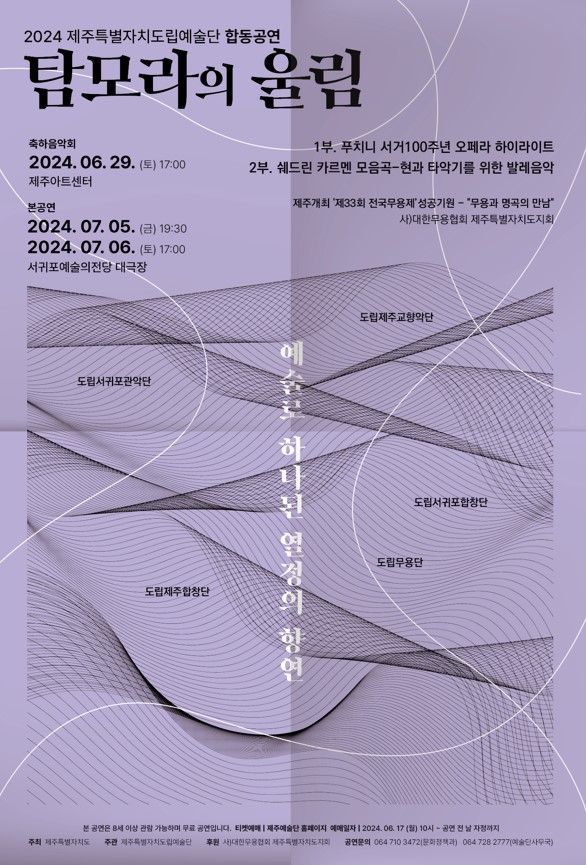 예매는 오는 28일까지 제주예술단 홈페이지(http://jejusi.go.kr/artjeju./main.do)에서 신청하면 되고, 관람료는 무료이다.