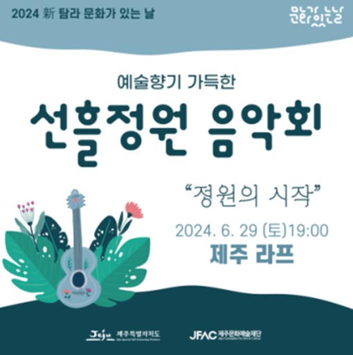 ㈜설문대가 주최하고 제주도와 제주문화예술재단이 후원하는 기획 공연 '선흘정원 음악회'가 오는 29일 오후 7시 제주시 조천읍에 위치한 라프에서 열린다.