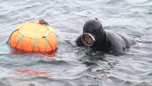 가차운 디서 테 ᄒᆞ나가 느렁테로 지나가고, 서가리가 부는 듯 ᄒᆞᄊᆞᆯ 얼어붸긴 ᄒᆞ여도 뒤에 신 질엔 베지딱 허리지딱 걷는 사름도 싯고 설랑설랑 걷는 사름도 싯고 설레미나멍 걷는 사름도 싯다. 바당은 들물로 ᄀᆞ득곡 ᄇᆞᆯ아노난 먼 바당 물ᄆᆞ르도 번듯헷다. 물창도 반득ᄒᆞ게 봐지고 물질 ᄆᆞ친 나 든 ᄌᆞᆷ녜 싯이 갯ᄀᆞᆺ디서 망시리에 ᄀᆞ득은 바릇거를 풀어놘 정리ᄒᆞ고 이섯다.