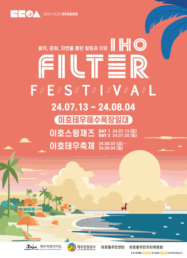 30일 제주도와 제주관광공사는 등에 따르면 '2024 이호 필터페스티벌'은 이호테우해수욕장이 물을 정화하는 필터처럼 방문객들에게 일상의 치유를 선사한다는 의미를 담아 개최된다.