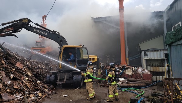 소방당국은 야적장에 600t이 넘는 폐목재가 쌓여 있어 진화에 어려움을 겪고 9시간만에 진화에 성공했다.