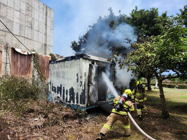 28일 제주소방안전본부에 따르면 지난 27일 오전 11시57분께 서귀포시 성산읍 오조리의 한 컨테이너 창고에서 불이 나 출동한 119에 의해 15분만에 진화됐다.