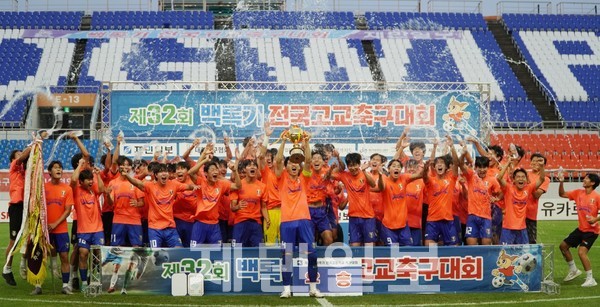 제민일보사(대표이사 사장 오홍식)·대한축구협회(회장 정몽규) 공동주최, 제주도축구협회(회장 윤일) 주관, 제주도·도교육청·도체육회 후원으로 열린 제32회 백록기 전국고교축구대회 결승전이 3일 오후 5시 제주월드컵경기장에서 열렸다.