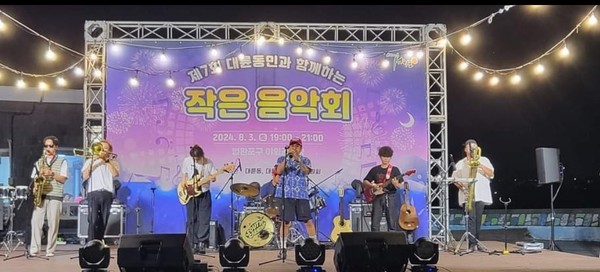 대륜동(동장 문철환)과 대륜동주민자치위원회(위원장 현용주)는 지난 3일 법환포구 야외공연장에서 300여명의 관람객의 호응 속에 제7회 대륜동민과 함께하는 작은 음악회를 개최했다.