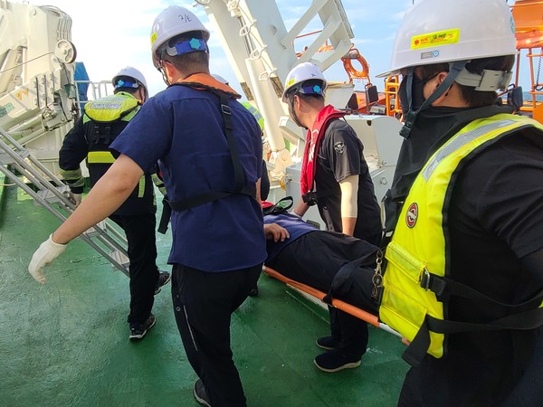 제주 해상에서 조업 중이던 한 어선에서 응급환자가 발생해 남해어업관리단이 해경에 인계했다.