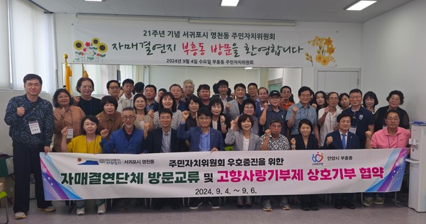 또한, 이날 행사에서는 고향사랑기부제 상호기부협약 및 영천동 특산품인 감귤의 판촉활동도 이뤄졌다.